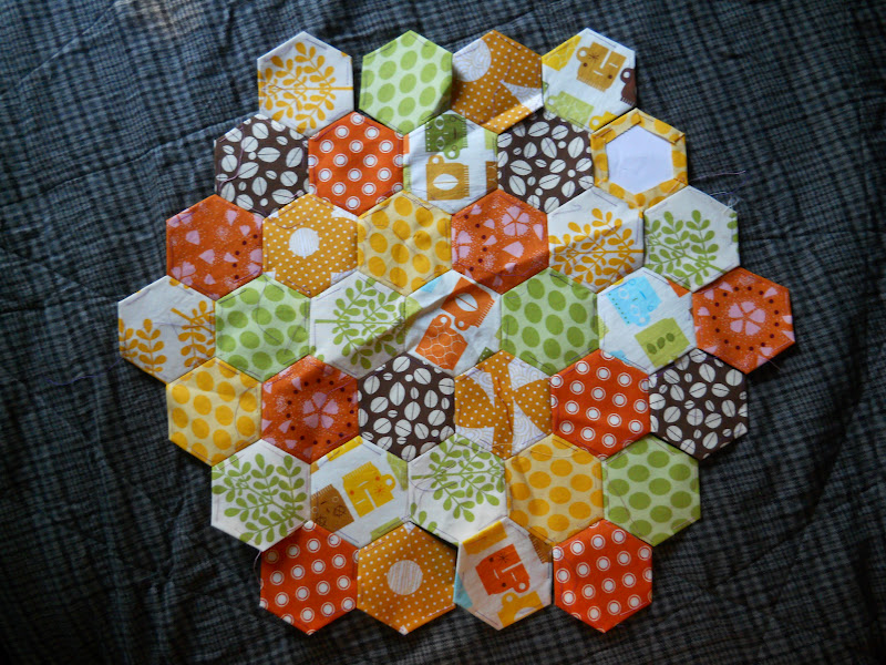 I just have one teensy tiny problem - I have no idea how to finish this. I'd like to keep all the nice pointy edges of the hexagons, but I'm not sure how to back/baste/quilt&bind my EPP. could you help me out? Any suggestions would be very much appreciated :)